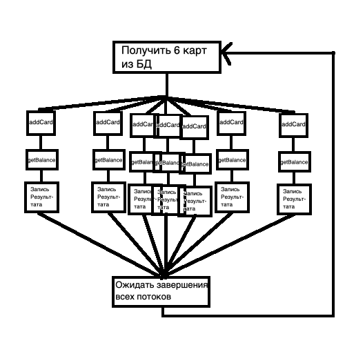 Предлагается параллелизировать этот процесс, делая одновременное получение 6 карт из БД, добавляя их в аккаунт и проверяя баланс: